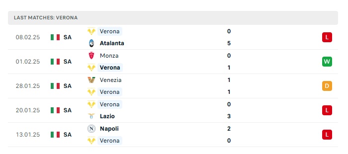 - Phong độ gần đây Verona