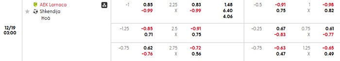 Bảng tỷ lệ kèo nhà cái AEK Larnaca vs Shkendija