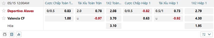 Soi kèo châu Á, kèo Alaves vs Valencia