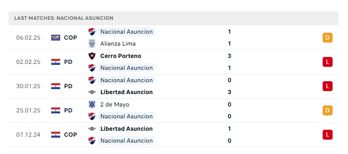 - Phong độ gần đây Nacional Asuncion