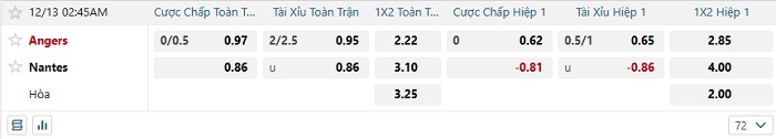 - Kèo tỷ số H1 Angers vs Nantes: 0-0