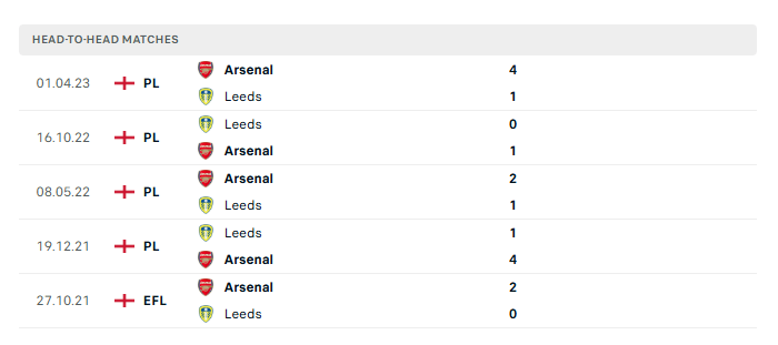 Phong độ gần đây Arsenal vs Leeds Utd