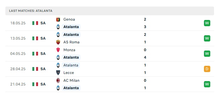 - Phong độ gần đây Atalanta
