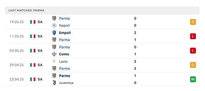 - Phong độ gần đây Parma