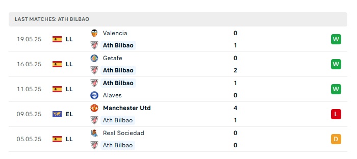 - Phong độ gần đây Athletic Bilbao