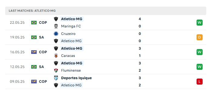 - Phong độ gần đây Atletico MG