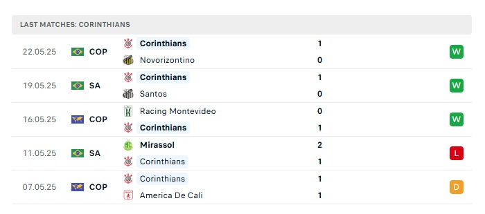 - Phong độ gần đây Corinthians