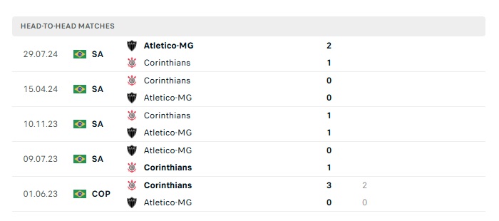 Lịch sử đối đầu Atletico MG vs Corinthians