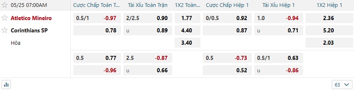 Soi kèo châu Á, kèo Atletico MG vs Corinthians