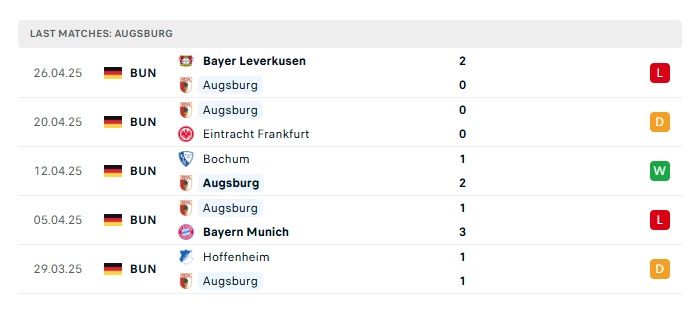 • Phong độ gần đây Augsburg