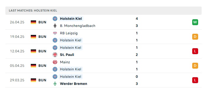• Phong độ gần đây Holstein Kiel