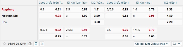 Soi kèo châu Á, kèo Augsburg vs Holstein Kiel