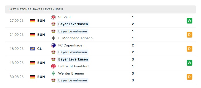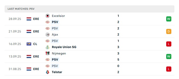 Phong độ gần đây B.Leverkusen  vs PSV Eindhoven