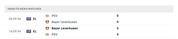 Lịch sử đối đầu B.Leverkusen vs PSV Eindhoven