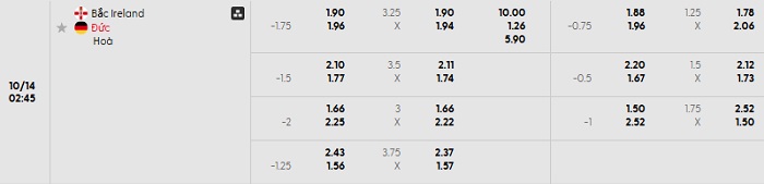 Bảng tỷ lệ kèo bóng đá hôm nay Bắc Ireland vs Đức