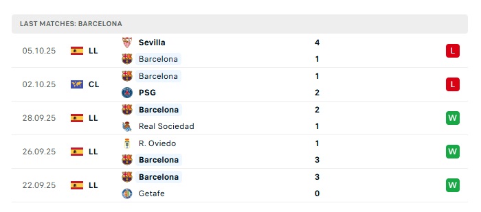 - Phong độ gần đây Barcelona