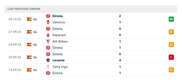 - Phong độ gần đây Girona