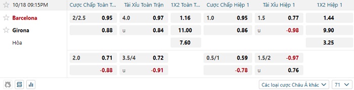 Bảng tỷ lệ kèo nhà cái Barcelona vs Girona