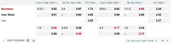 Soi kèo châu Á, kèo Barcelona vs Inter