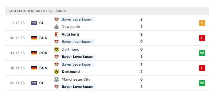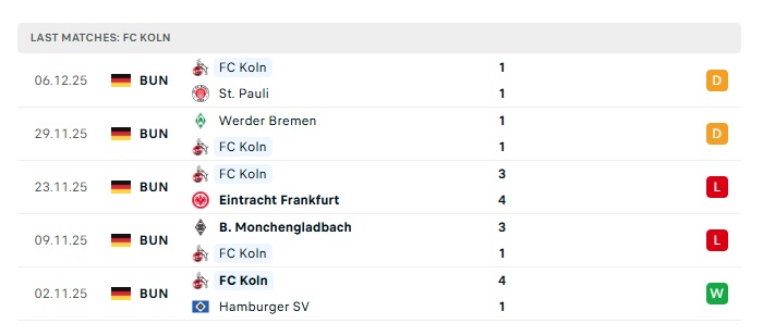 Phong độ gần đây Bayer Leverkusen vs FC Koln