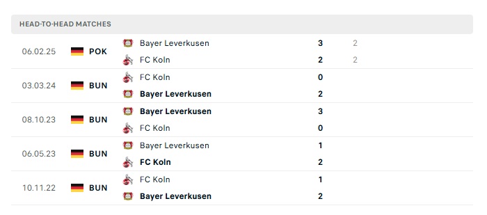 Lịch sử đối đầu Bayer Leverkusen vs FC Koln