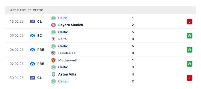 • Phong độ gần đây  Celtic