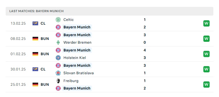 • Phong độ gần đây Bayern Munich