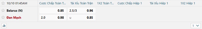 Bảng tỷ lệ kèo nhà cái Belarus vs Đan Mạch