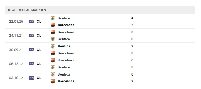 - Kèo tỷ số H2 Benfica vs Barcelona: 0-1