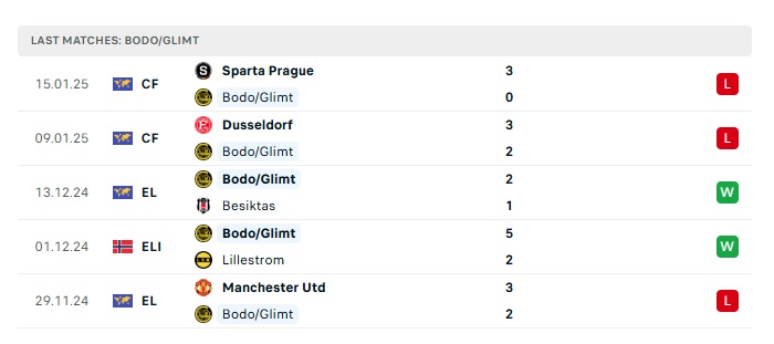 Phong độ gần đây Bodo Glimt vs Maccabi TA