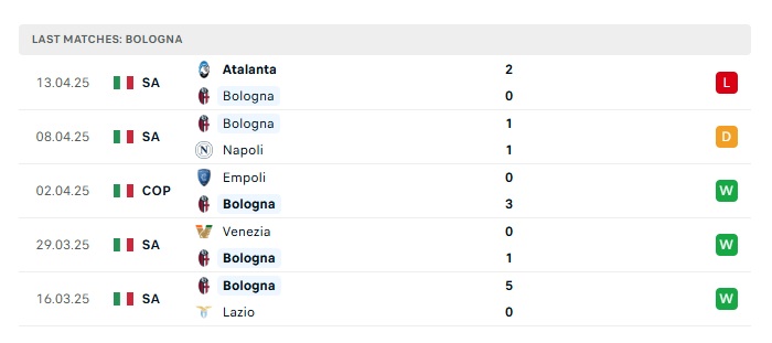 • Phong độ gần đây Bologna