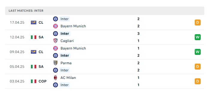 • Phong độ gần đây Inter Milan