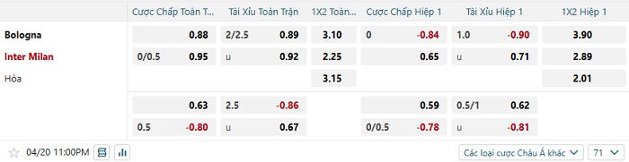 Soi kèo châu Á, kèo Bologna vs Inter Milan