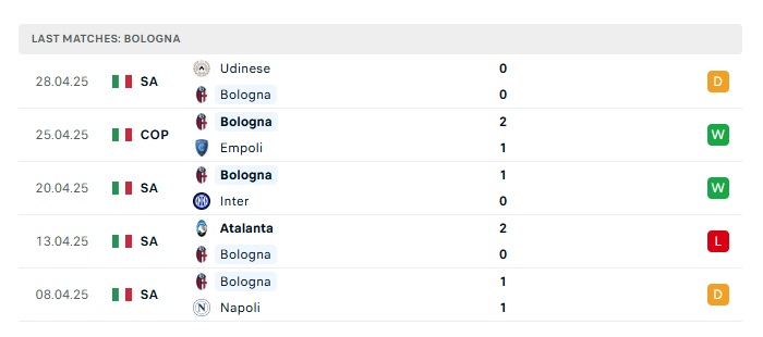 - Phong độ gần đây Bologna