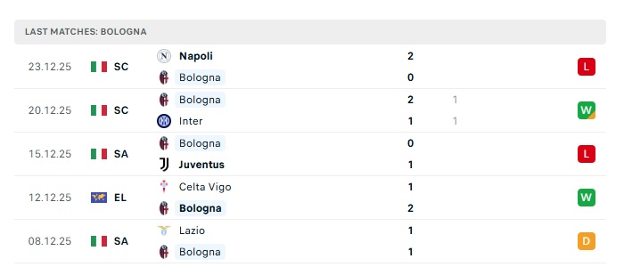 • Phong độ gần đây Bologna