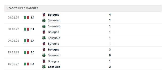 Lịch sử đối đầu Bologna vs Sassuolo