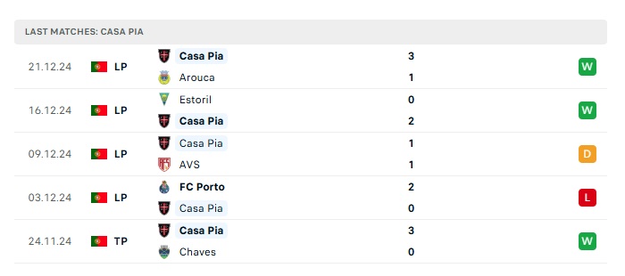 - Phong độ gần đây Casa Pia AC