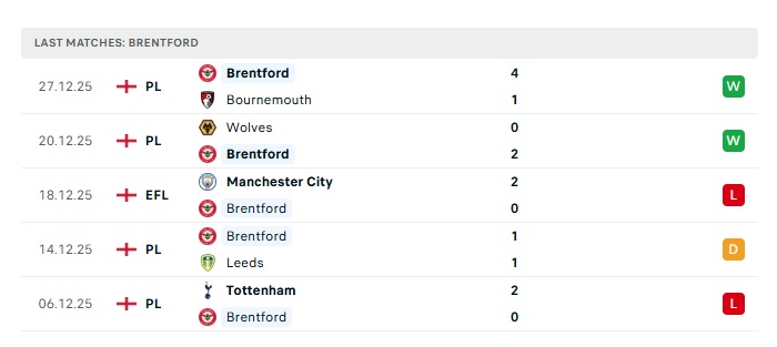 - Phong độ gần đây Brentford
