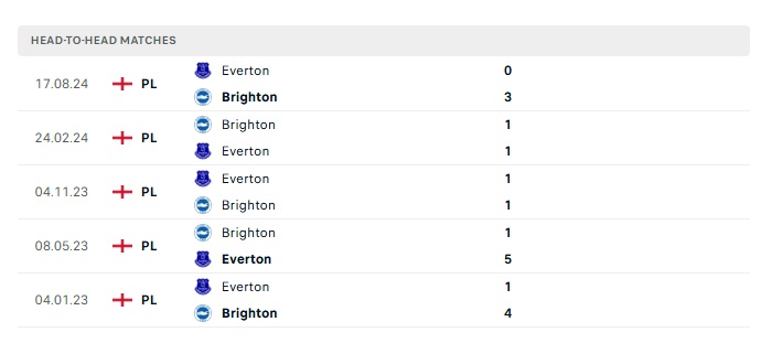 - Kèo tỷ số H2 Brighton vs Everton: 2-1