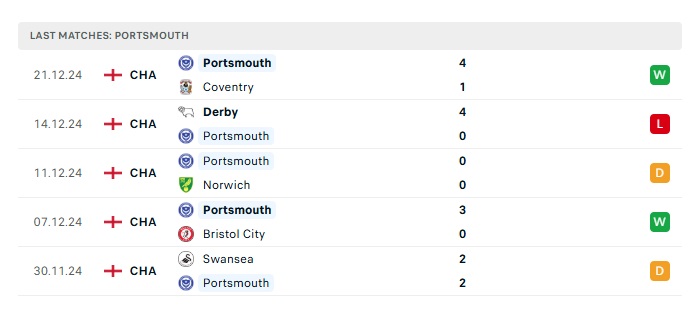 • Phong độ gần đây Portsmouth