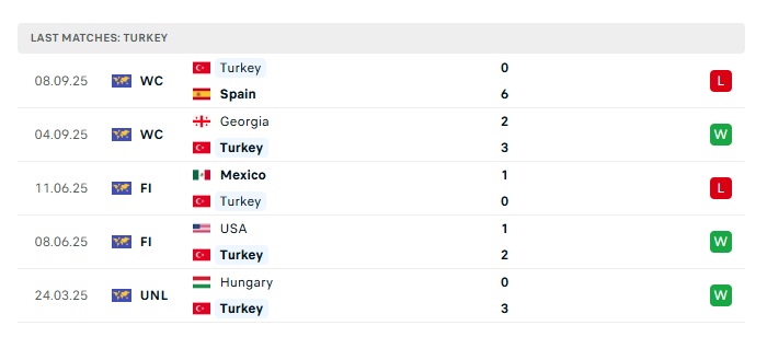 • Phong độ gần đây Thỗ Nhĩ Kỳ