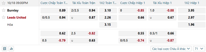 Bảng kèo nhà cái Burnley vs Leeds Utd