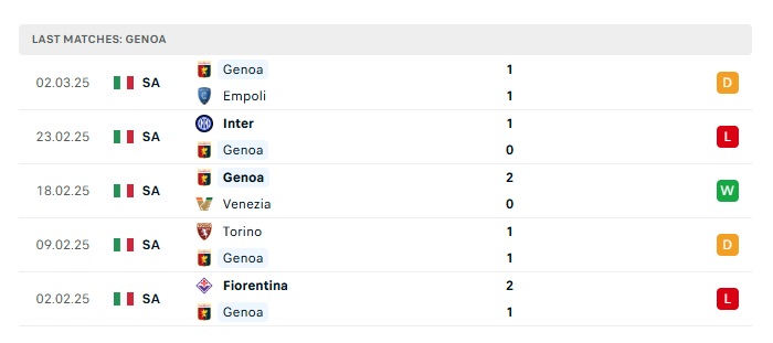 - Phong độ gần đây Genoa