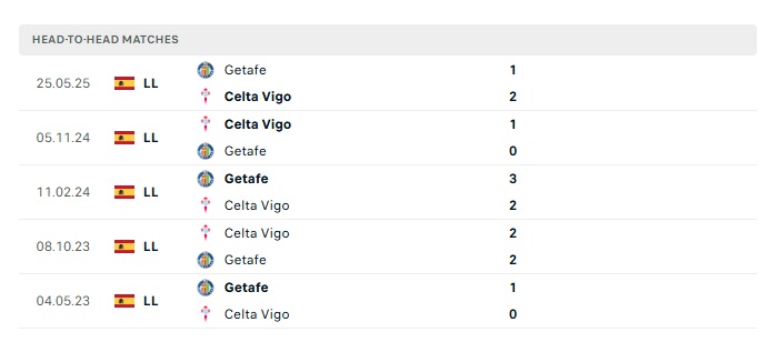 Lịch sử đối đầu Celta Vigo vs Getafe