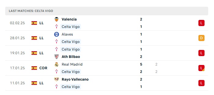 - Phong độ gần đây Celta Vigo