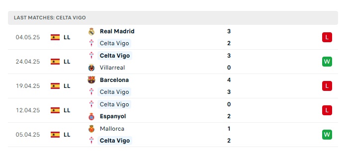 • Phong độ gần đây Celta Vigo