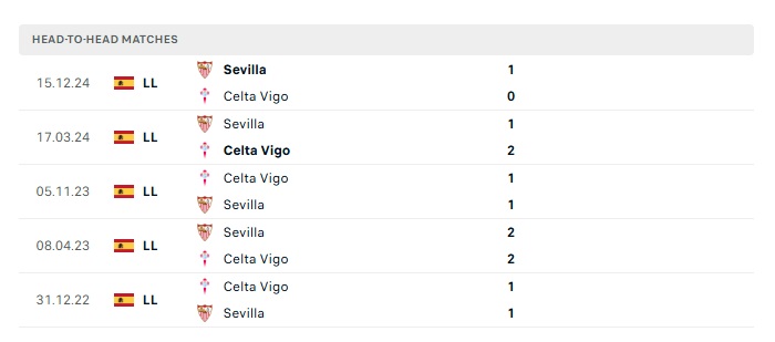 • Kèo tỷ số H2 Celta Vigo vs Sevilla: 2-0