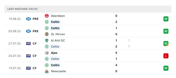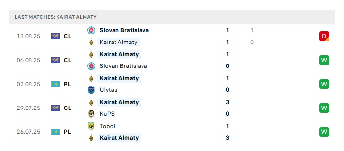 Phong độ gần đây Celtic  vs Kairat Almaty
