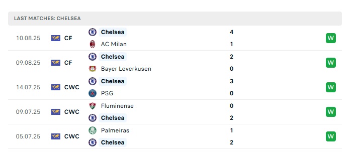 Trong thời gian qua, phong độ của The Blues rõ ràng là tốt hơn nhiều so với đối thủ của họ. Nên biết, đội bóng này đã toàn thắng cả 5 trận đấu liên tiếp bao gồm cả 3 trận tại Club World Cup và 2 giao hữu. Trong khi đó thì Crystal Palace chỉ thắng 3, thua 2 trong 5 trận gần nhất với chỉ 1 trận tại FA Cup. Do đó, việc đội chủ nhà có 3 điểm trong ngày thi đấu hôm nay là điều hoàn toàn dễ hiểu.