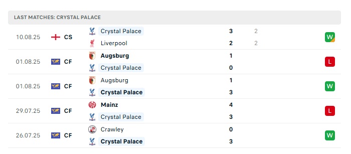 Phong độ gần đây Chelsea  vs Crystal Palace